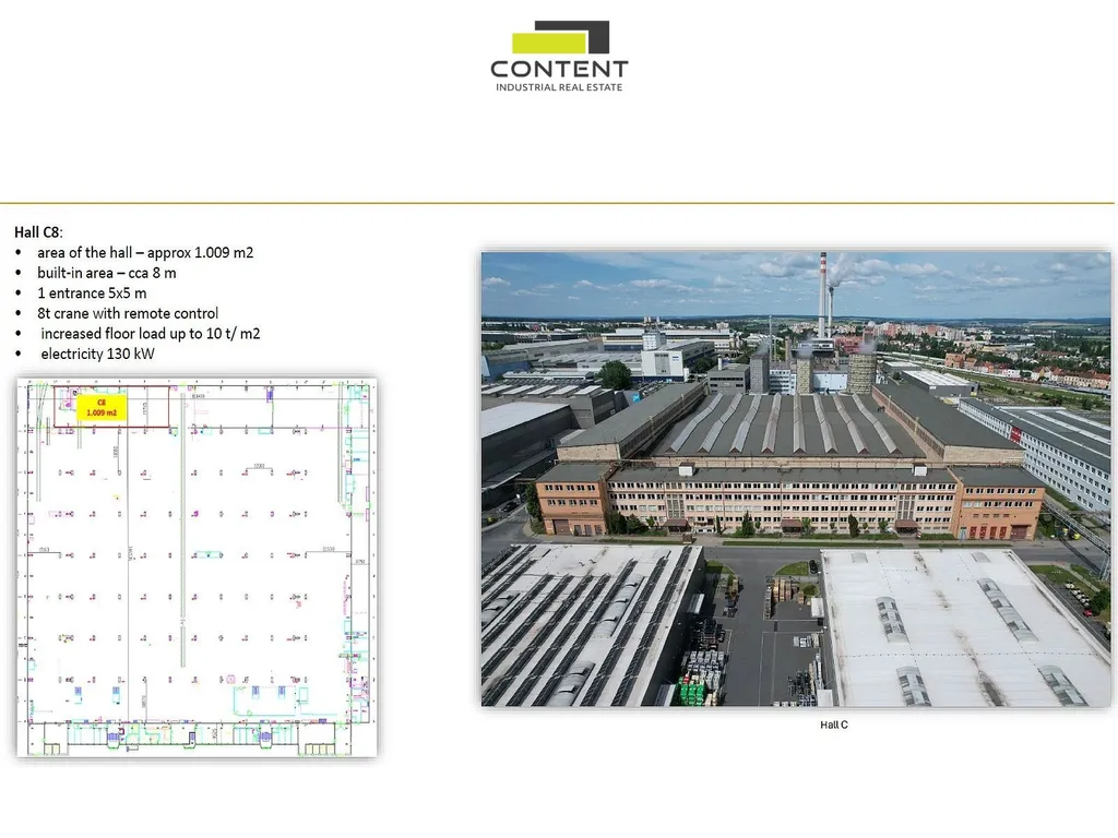 - hala C8 v rekonstrukci - 1009 m², k dispozici na dotaz,