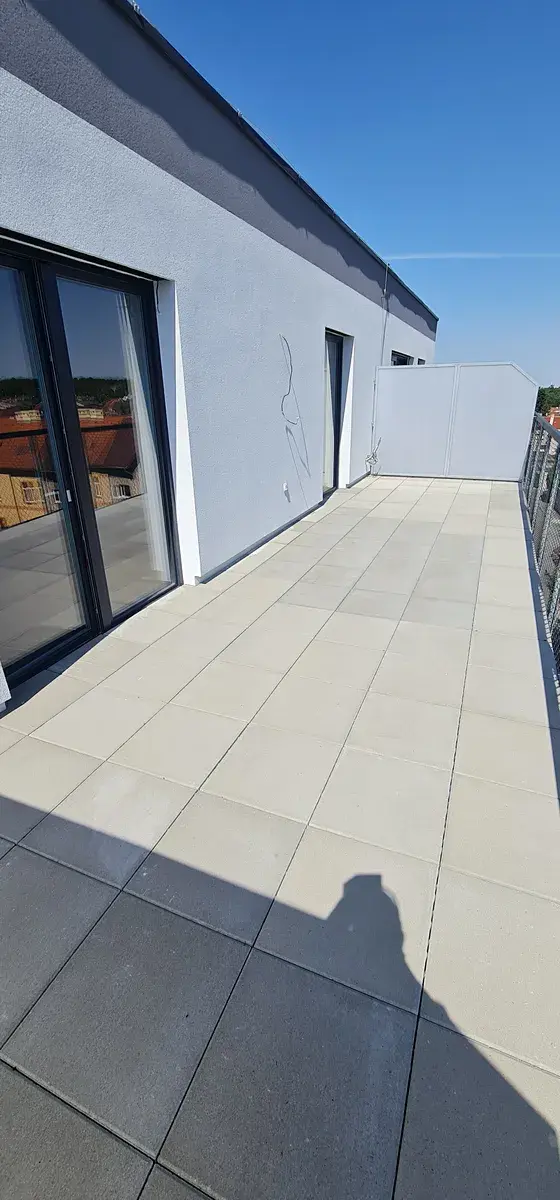 Byt se nachází ve velmi dobrém stavu a nabízí moderní komfort bydlení. Součástí bytu je prostorná terasa o ploše 28 m², na které si můžete vychutnat chvíle odpočinku. Nabízí se zde rovněž klimatizace, která zajistí pohodlí i v horkých letních dnech. Byt není vybavený, což Vám dává svobodu zařídit si ho dle vlastních představ. K bytové jednotce je také k dispozici parkování.