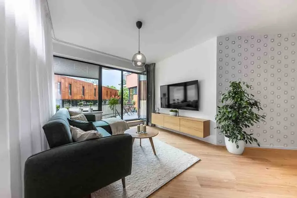 • velkorysé dispoziční řešení (obývací pokoj s kuchyní, dvě ložnice, sociální zařízení, prostorná komora a chodba se zádveřím,