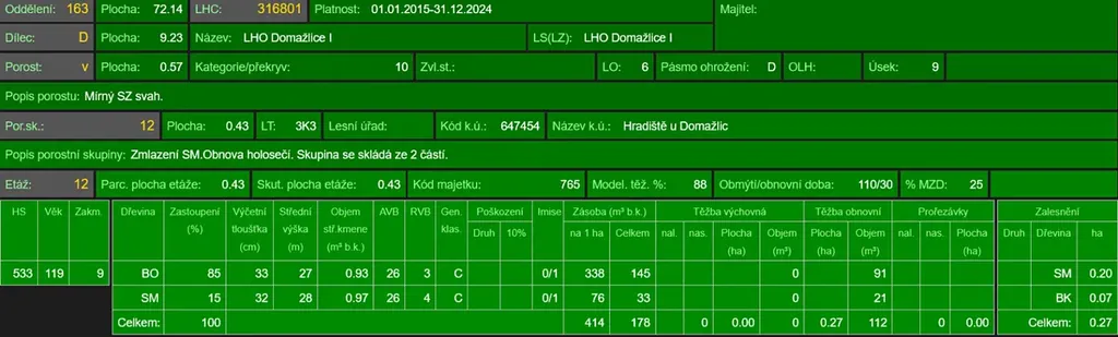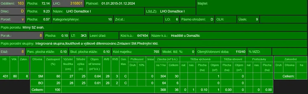 Jedná se o p.č. 492 vedená jako lesní pozemek o celkové výměře 5 650 m2.