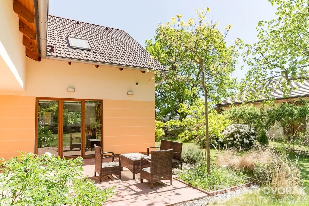 Z obývacího pokoje i přilehlého pokoje je přímý vstup na terasu orientovanou na jihozápad, která poskytuje příjemné místo k posezení. Druhá, menší terasa navazující na jídelní část je orientována na jihovýchod.