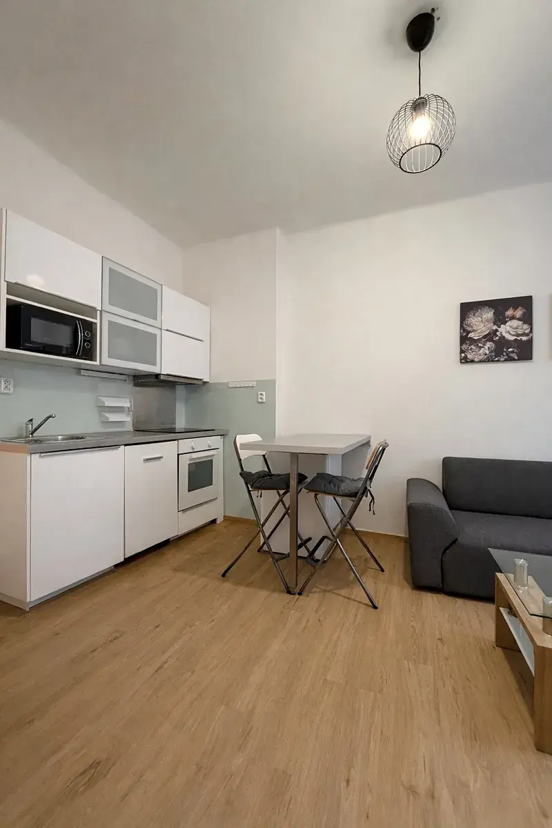 Byt je plně zařízený nábytkem a připraven k okamžitému nastěhování. Kuchyňská linka je vybavena veškerými spotřebiči – myčka nádobí, lednice, sporák, digestoř a rychlovarná konvice. K dispozici je rovněž pračka. V bytě jsou nové podlahy, které podtrhují čistý a moderní vzhled interiéru.
