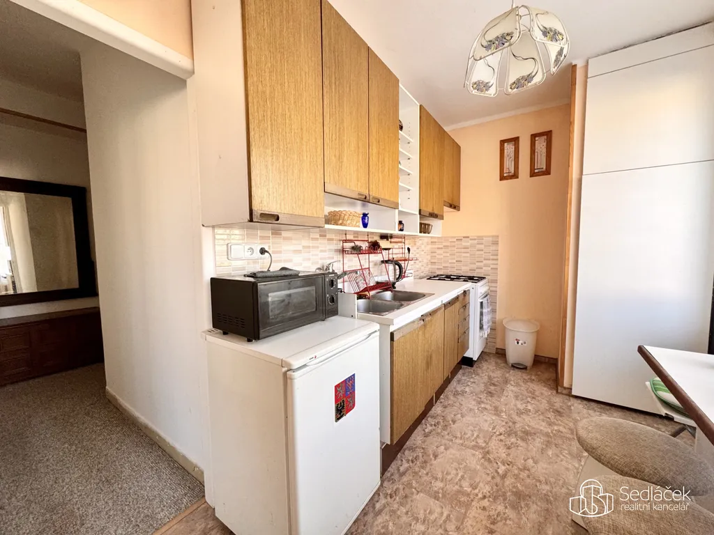 Byt je slunný, vzdušný a má praktickou dispozici. Nabízí obývací pokoj, samostatnou ložnici, oddělenou kuchyň s kuchyňskou linkou a plynovou troubou, koupelnu s vanou a samostatné WC. Byt je kompletně vybaven dle fotografií. Plastová okna zajišťují dobrou tepelnou izolaci a nízké provozní náklady. K bytu náleží sklepní kóje.