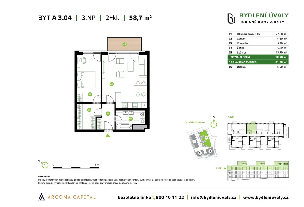 Energeticky úsporný byt 2+kk, 61,4 m² s balkonem 5 m² v projektu Bydlení Úvaly