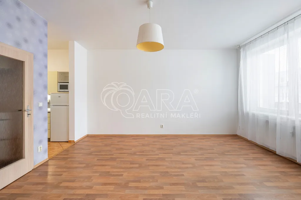 Podlahová plocha bytu je 38,8 m² a nachází se v 7. NP cihlového domu z roku 2009 (výtah je samozřejmostí). Skládá se z předsíně o výměře 4,31 m², ze které je přístupná kuchyně spojená s obytnou částí, která má výměru 29,27 m². Je vybavena kuchyňskou linkou se spotřebiči (elektrická trouba se sporákem, digestoř, lednice s mrazákem, myčka). Disponuje terasou o výměře 5,02 m². Z předsíně je také přístupná koupelna a samostatné WC, přípojka na pračku a dostatek místa i na sušičku je samozřejmostí (tyto spotřebiče nejsou součástí nájmu). K dispozici je také samostatný sklep o výměře 3,75 m².