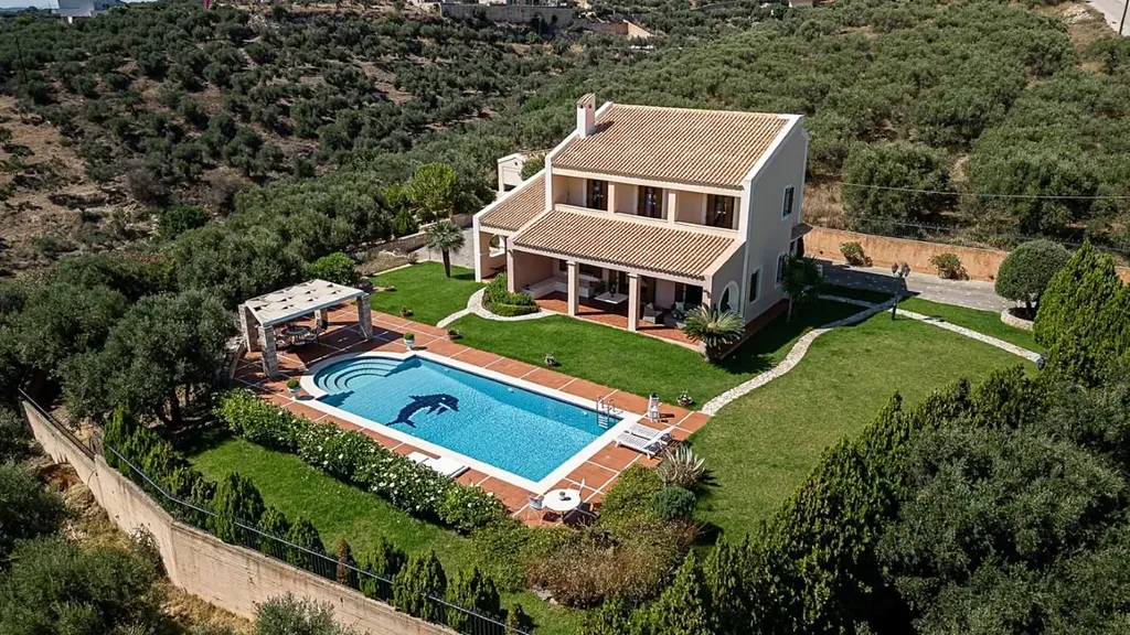 Vila je vybavena klimatizací, centrálním topením na individuální ovládání, satelitem, internetovým připojením, okny z masivního afrického dřeva, moskytiérami, italskou a španělskou dlažbou, krbem a dřevěnými podlahami. Na zahradě je bazén (70 m2), venkovní sprcha, BBQ gril, krytá terasa k posezení. Na pozemku je i olivový sad o rozloze 1 700 m2, na kterém se pěstuje celkem 50 olivovníků, ze kterých se produkuje 200 – 300 kg extra panenského olivového oleje. Parkování je možné v garáži a na krytém venkovním stání. Vzdálenost k moři a pláži je přibližně 1,9 km.