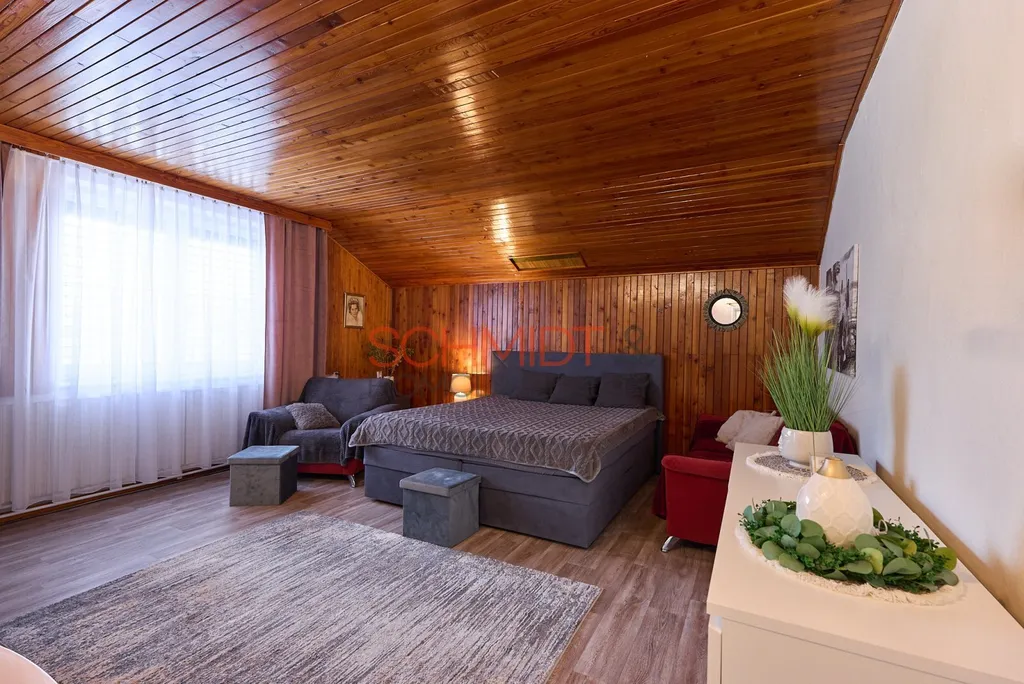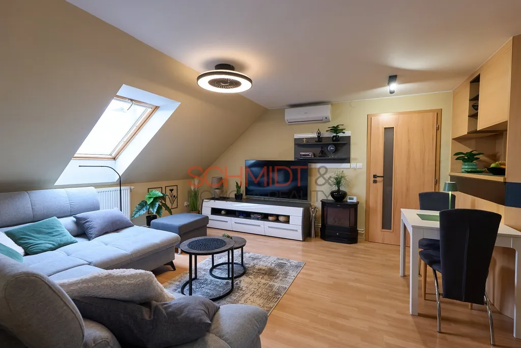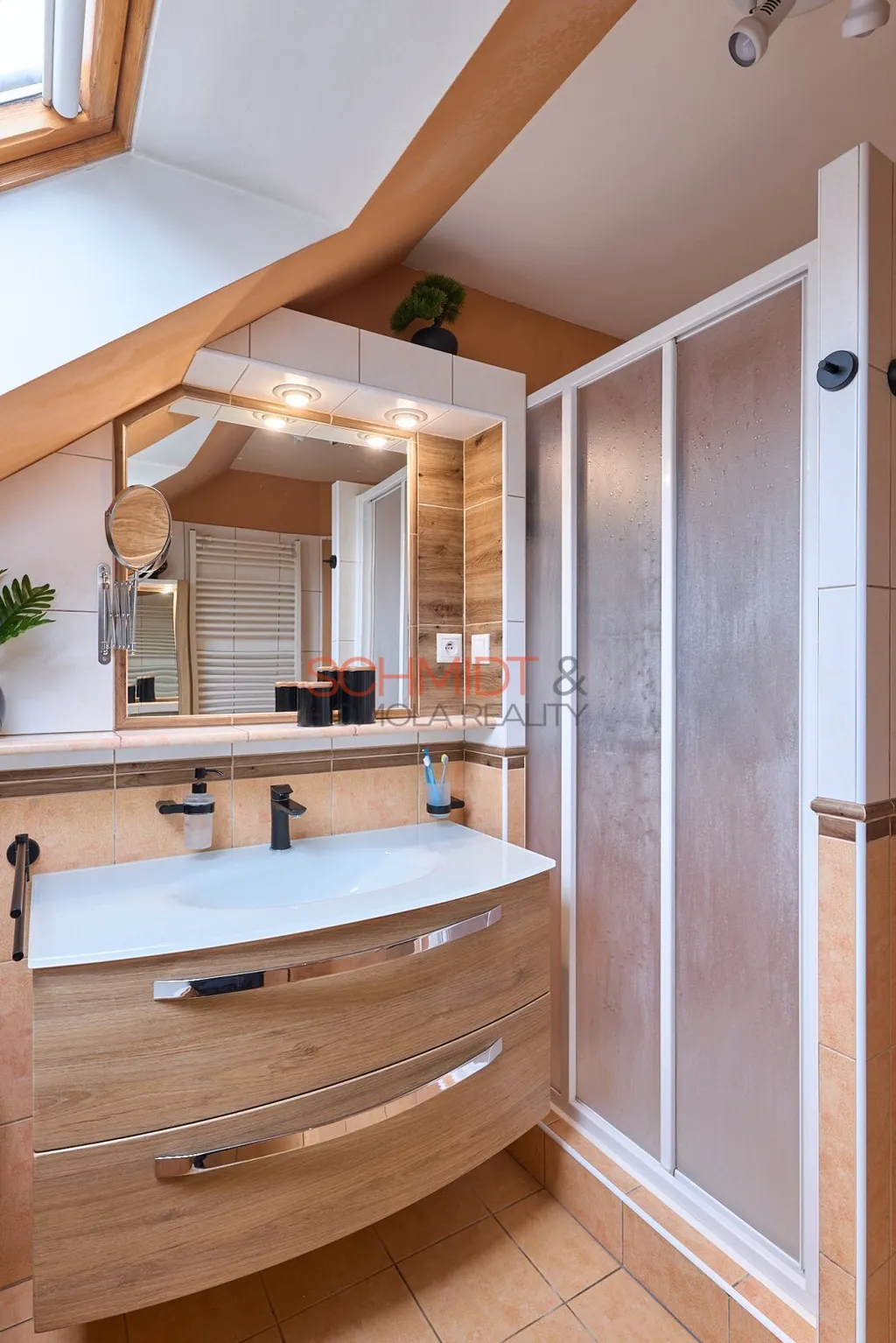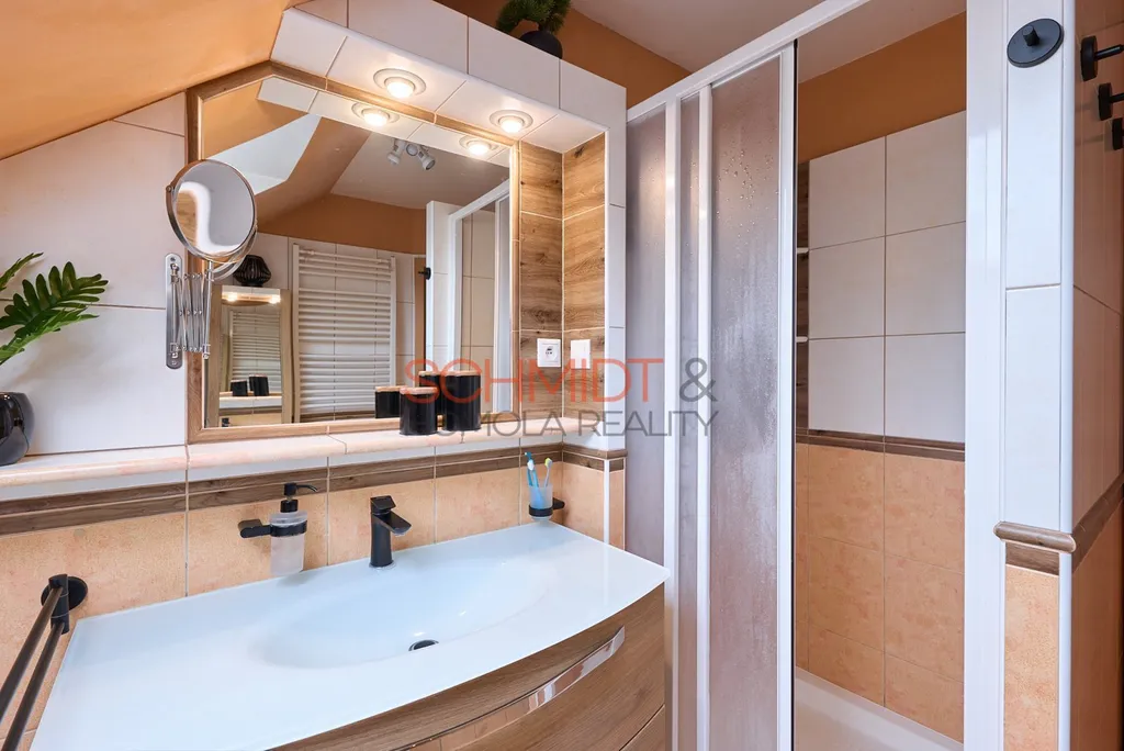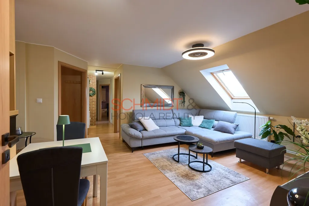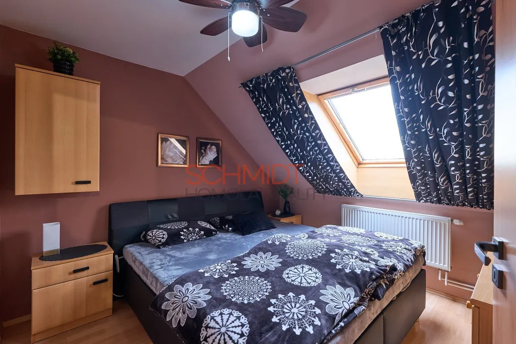 Podkroví kolaudované v roce 2005 je přístupné samostatným vchodem. Obytná plocha tohoto podlaží činí 84 m², užitná plocha včetně schodiště a terasy 149,63 m² a jeho dispozice je 4kk. Nachází se zde zádveří, tři neprůchozí ložnice, koupelna s vanou i sprchovým koutem, šatna, oddělené wc, útulný obývací pokoj a kuchyně. Z té je vstup na terasu s útulnou pergolou a a dále do zahrady.