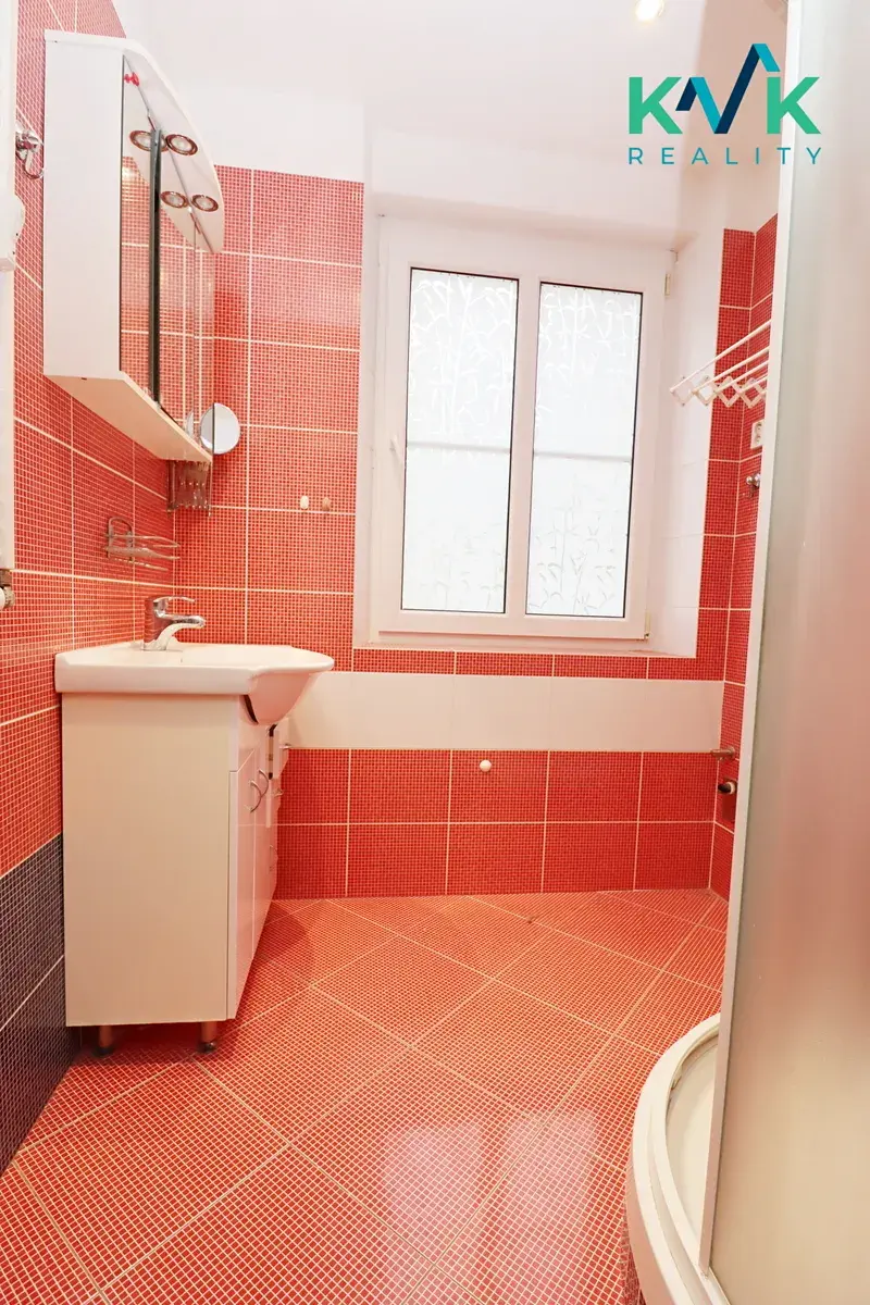 Koupelna je se sprchovým koutem a prostorem pro pračku, toaleta je samostatná.