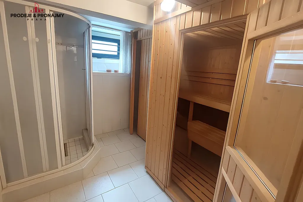 V suterénu domu je sauna s sprchovým koutem, několika místnosti současné použitých ke skladovaní a kotelna s plynovým a elektrickým kotlem.