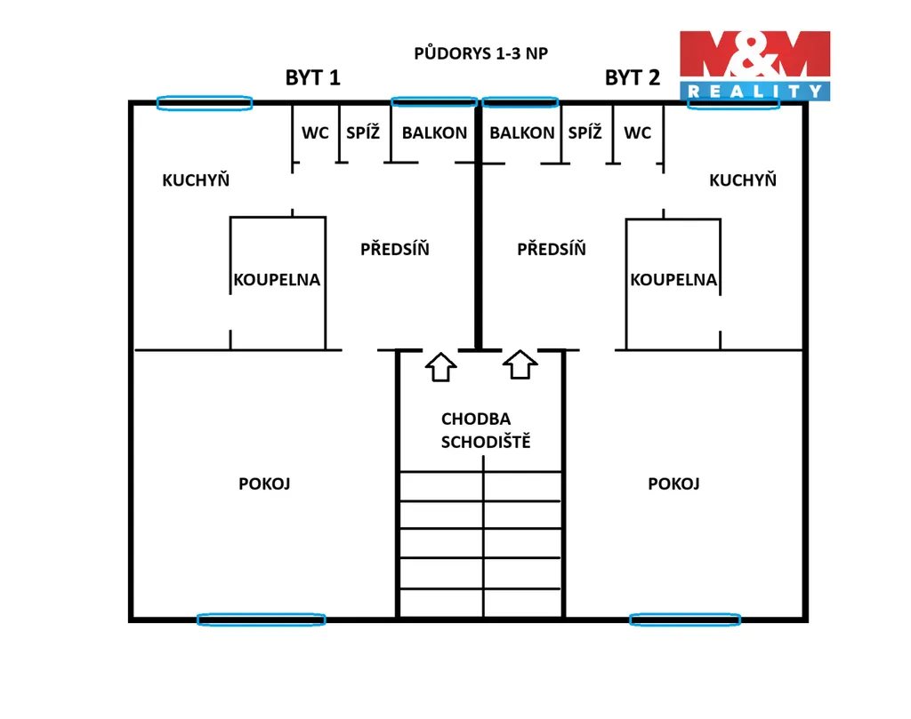 Nabízíme k prodeji cihlový bytový dům o celkové ploše 502 m². Dispozice: 1.–3. NP každé patro 102 m², podkroví 98 m², suterén 98 m². K domu náleží pozemek 256 m², z toho zahrada 108 m².