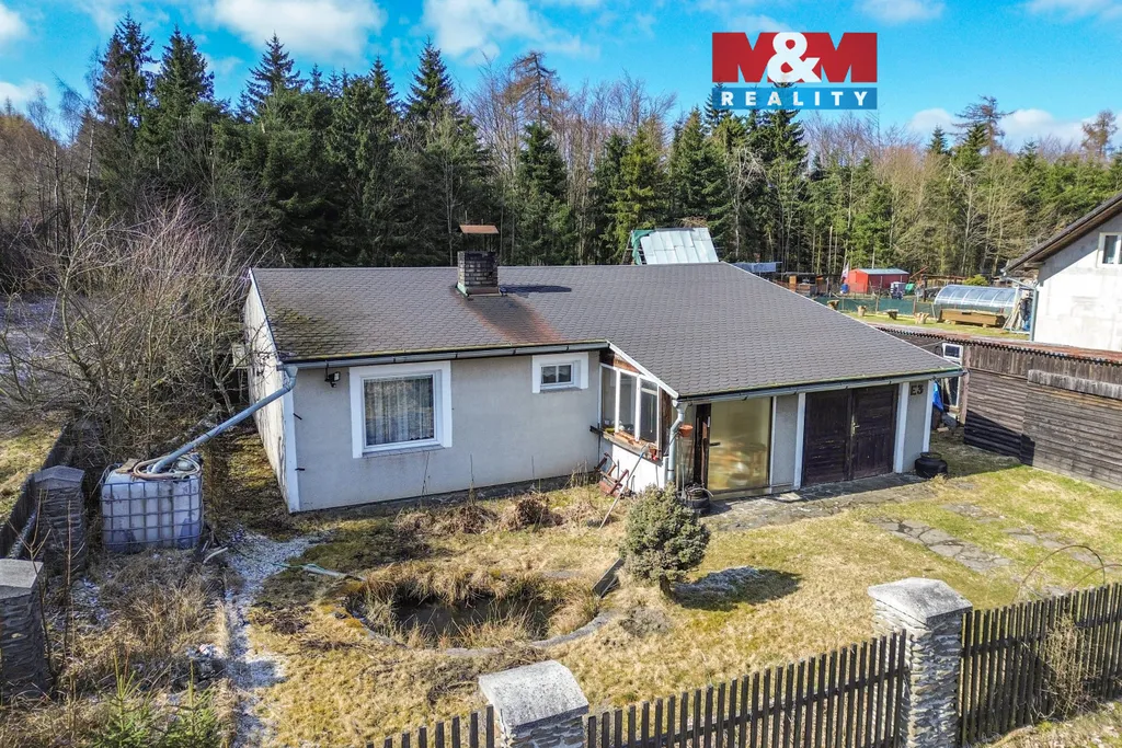 Nabízíme k prodeji moderní chalupu vhodnou k bydlení, na okraji obce Bezvěrov. Nemovitost je perfektní pro někoho kdo hledá klidné bydlení u lesa a současně dobrou občanskou vybavenost i dostupnost do většího města. V Plzni i v Karlových Varech jste odsud za 30 minut. Dům má moderní dispozici v podobě prostorného obývacího pokoje, z kterého lze francouzským oknem vyjít na terasu k bazénu, na druhou stranu z něj dojdeme do jídelny s kuchyňským koutem nebo do prostorné ložnice. Potěší také kachlová kamna, pro lepší atmosféru nejen zimních dní. Dále odsud projdeme do koupelny s wc a vanou. Chodbou pak pokračujeme do dalšího pokoje, spíže a garáže do které se vejde běžné auto. Dům je napojen na vlastní vrt a vlastní ČOV, na zadní zahradě najdeme kopanou studnu. K vytápění slouží stropní infrapanely (v každé místnosti) a již zmíněná kamna. Zadní parcelu je možné využít k výstavbě dalšího domu. Líbí se Vám tento dům, neváhejte a domluvte si včas prohlídku.