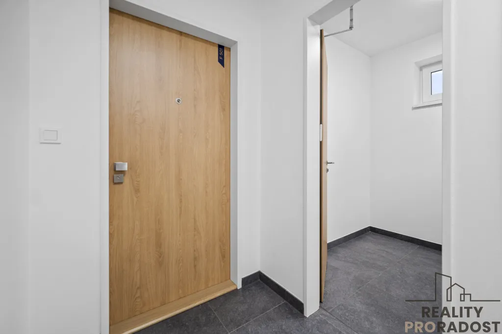 Velkou výhodou je komfortní přístup suchou nohou – autem vjedete přímo do garážového stání v patře bytu, odkud projdete krátkou chodbou. Poslední dveře na chodbě patří již pouze tomuto bytu a hned vedle nich se nachází prostorný sklep.