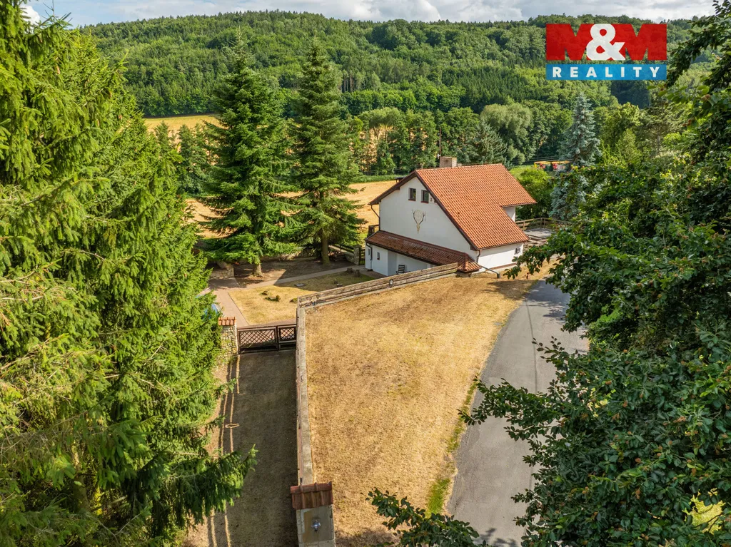 Chcete-li si užít oázy klidu a zároveň mít k dispozici dům s velkou užitnou plochou, bazén a krásné venkovní posezení s krbem, tak právě pro Vás je zde ideální nemovitost. Dům kousek od Řevničova o třech podlažích nabízí podlahovou plochu 152 m2, rozkládá se na pozemku o velikosti 753 m2 a dříve sloužil jako penzion. K těmto účelům je možné jej využít i nyní. V přízemí domu se nachází 2 pokoje, tech. místnost, kuchyň, koupelna, 2 x WC a rovněž vstup do sklepa, který má plochu 8 m2. V prvním patře domu se nachází 2 pokoje, jeden se vstupem na balkón a druhý na terasu. V podkroví je koupelna, šatna, 2 pokoje a balkón. Velikou devizou nemovitosti je zastřešené posezení s krbem a bazénem o velikosti 7 x 3,5 m. Dům má ještě k dispozici samostatnou místnost o velikosti 14 m2 (využitelnou např. jako dílna), druhý venkovní krb a udírnu. Nemovitost je v zachovalém stavu a je vhodná k rekonstrukci dle svých představ. Je možné ji využít pro vícegenerační bydlení.