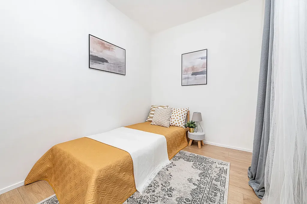 Dispozici bytu tvoří dvě neprůchozí ložnice, velkorysý obývací pokoj spojený s kuchyní, prostorná koupelna se sprchovým koutem a samostatný záchod.