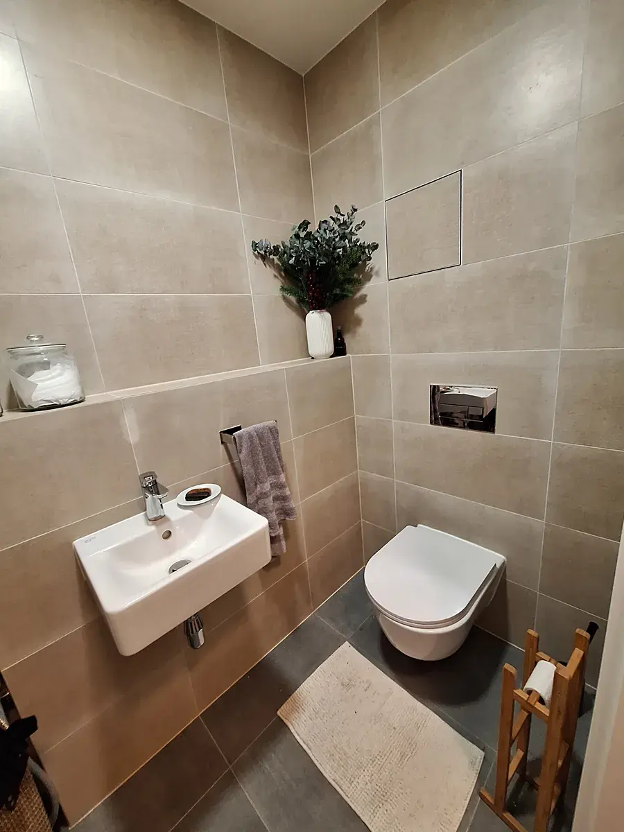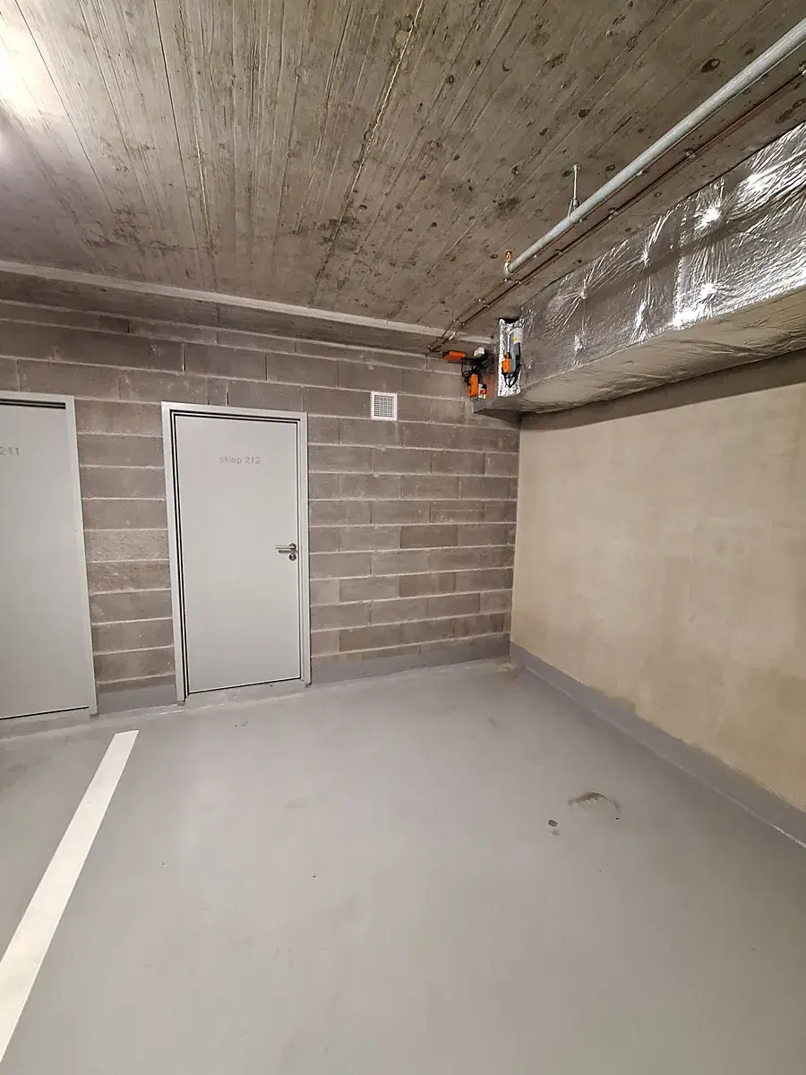 Dále je v bytě koupelna se sprchovým koutem, samostatné WC a dvě neprůchozí ložnice. Videotelefon, bezpečnostní dveře třída 3, sklep v suterénu (3,5 m2).