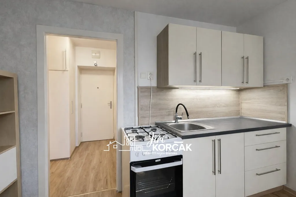 V bytě zůstává kuchyňská linka včetně plynového sporáku a lednice. Součástí nabídky je také částečné vybavení – stůl se židlemi, skříň, stolek pod televizi a police, což může usnadnit jak nastěhování, tak případné další pronajímání.