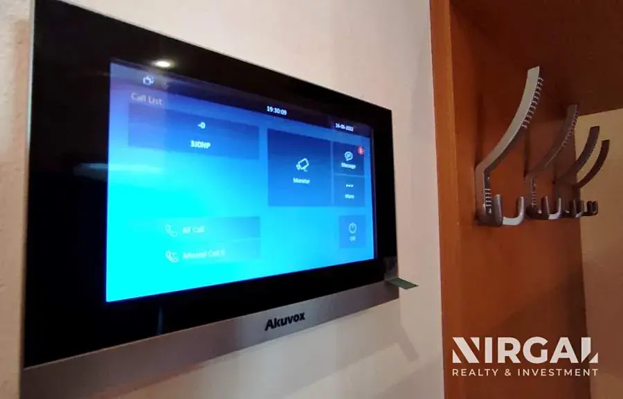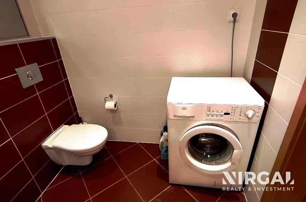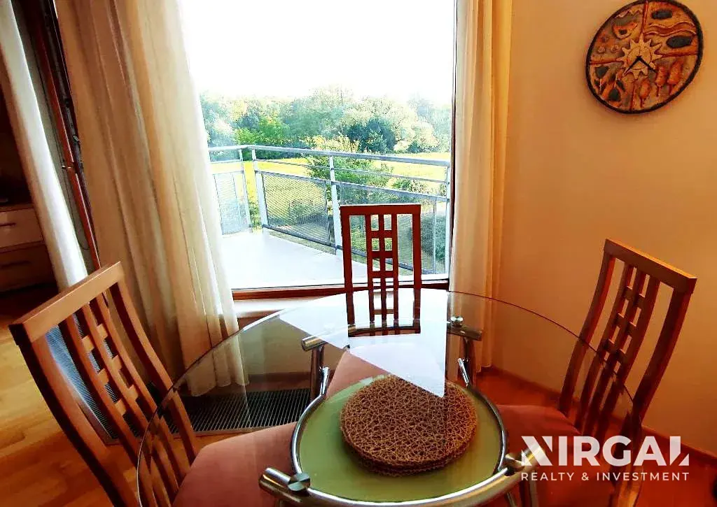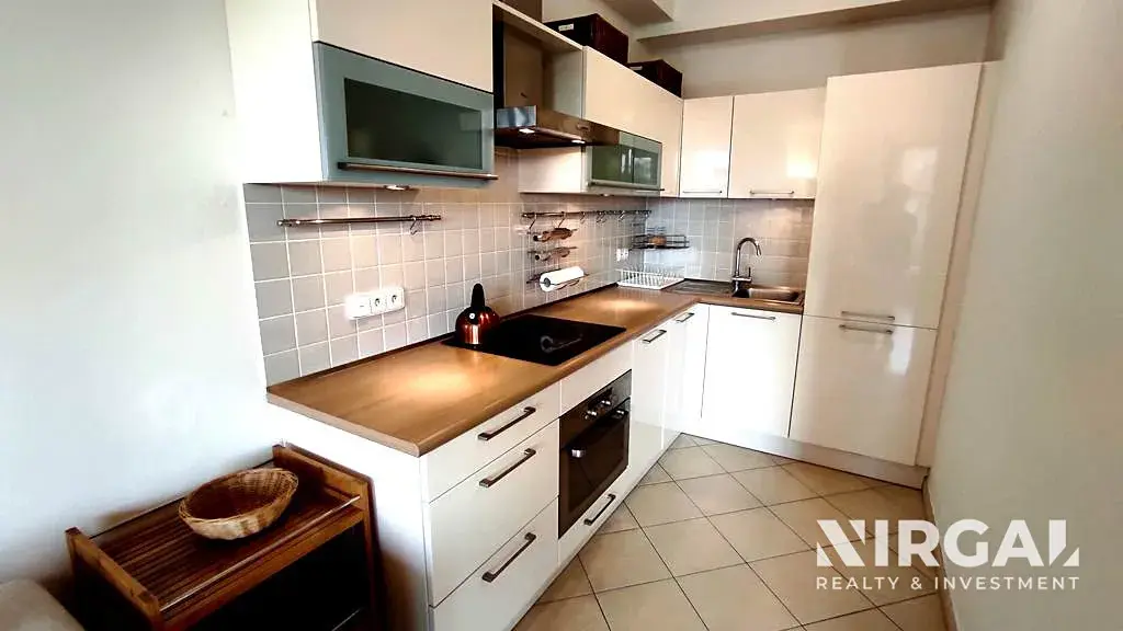 Byt se nachází ve 2. patře a je velice vkusně a elegantně zařízen v moderním stylu v duchu rovných a čistých linií. Skládá se z prostorné předsíně s šatnou, světlého obývacího pokoje s kuchyňským koutem abalkonem, útulné ložnice a velké koupelny s vanou, pračkou a WC. Kuchyňská linka vybavená ledničkou a mrazákem, myčkou, sklokeramickou varnou deskou, mikrovlnnou troubou, digestoří a pečící elektrickou troubou. Každý pokoj disponuje velkými francouzskými okny, které jsou obrácena směrem do tichého dvora. V bytě jsou bezpečnostní dveře a alarm.