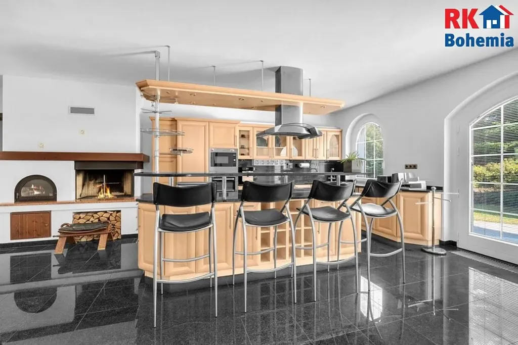 Výhodou elektrocentrálu na benzin s automat.startem, která napájí veškeré osvětlení, zásuvky, vjezdovou bránu a garážová vrata. V kuchyni je GRIL na dřevo a dřevěné uhlí + pec na pizzu na dřevo a v obývacím pokoji velký krb na dřevo a to vše funguje bez elektřiny.