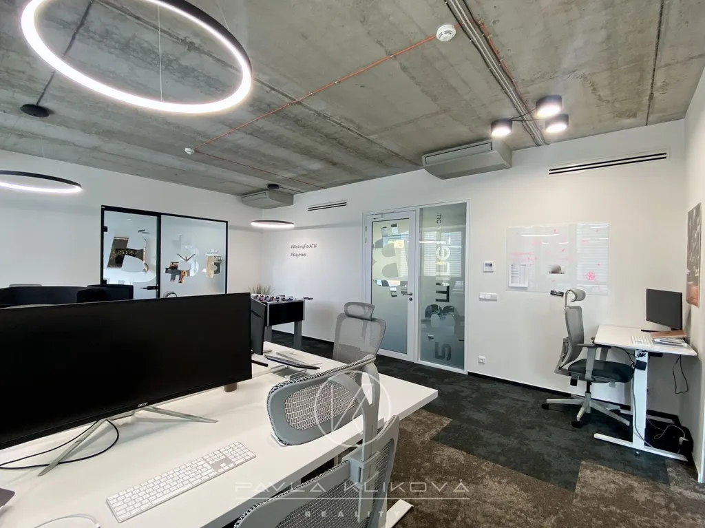 Ojedinělá nabídka kanceláří v Hadovka Office Park. Podnájem kanceláří v Hadovka Office Park na Evropské ulici v Praze 6. Potřebujete přechodně vyřešit vaše kancelářské prostory? Podnájem pouze do 30.6.2026. Klimatizované kanceláře o ploše 88 m2 se sestávají ze 3 kanceláří a vlastní kuchyňky. K podnájmu patří i dvě garážová parkovací stání. Kanceláře jsou vybaveny svítidly, koberci a masivním stolem v zasedačce a židlemi. Okna směřují do klidové a relaxační zóny, zelené terasy v přízemí. Budova má externí žaluzie, klimatizaci, otevírací okna, je vybavena moderními technologiemi. K pohodlí vašemu i vašich klientů je zde centrální recepce, fitness, kavárny, restaurace i společné terasy pro relax a odpočinek. Strategická poloha snadno přístupná z dálnice i letiště. Prostory jsou k dispozici ihned.