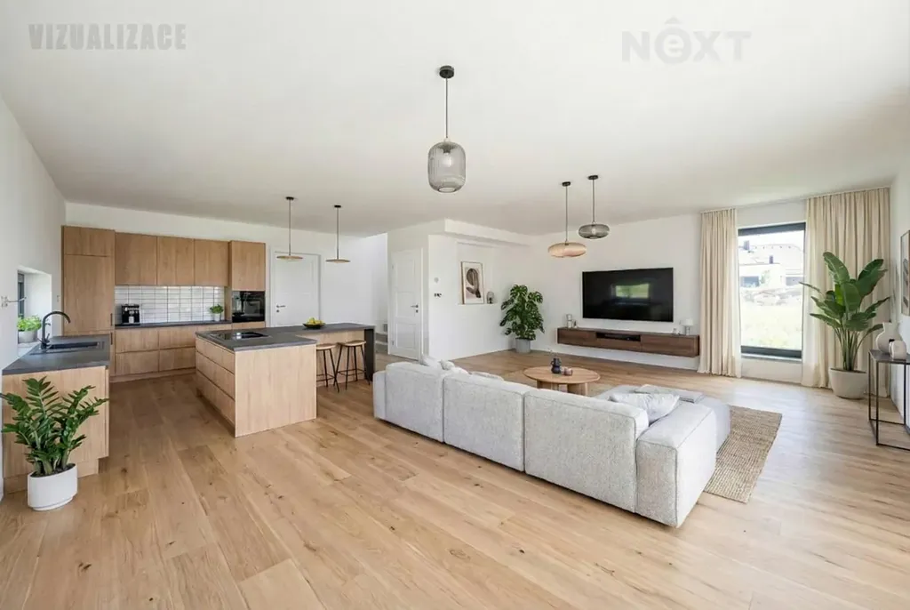 Jste velká rodina, která potřebuje hodně prostoru a zároveň soukromí pro všechny zúčastněné? Pak mám pro Vás moderní dvoupodlažní rodinný dům v klidné části dynamicky se rozvíjející obce Předměřice nad Labem, s pozemkem o celkové výměře 1037 m². Jedná se o novostavbu s důrazem na kvalitu použitých materiálů. Výstavba byla započata 12/2022 a dokončena 04/2025. Dům se momentálně nachází ve fázi, kde jsou hotové vnitřní sádrové omítky a je vše připraveno pro finální dokončení dle individuálního vkusu nového majitele. Dispozičně se jedná celkově o 11kk s podlahovou plochou 260 m² s garáží pro dvě auta. Garáž je osazena sekčními vraty značky Hörmann a je propojena se vstupem do domu. Výhodou je samostatná bytová jednotka o dispozici 2kk (cca 30 m²) s vlastní koupelnou a přípravou na kuchyň, která má vchod hned ze vstupní chodby domu. Tento prostor je ideální jako kancelář, nebo útočiště pro skoro dospělého puberťáka. Přízemí tvoří otevřený obytný prostor s kuchyní o rozloze 50 m² a přípravou na kuchyňský ostrůvek. O spojení s venkovním prostorem se postará rohový velkoformátový HS portál. V přízemí domu se dále nachází pracovna, šatna, technická místnost, samostatné WC a prostorná chodba s dostatkem místa pro vestavěné skříně. V patře se nachází hlavní ložnice s walk-in šatnou a koupelnou. Čtyři samostatné pokoje, které lze využít jako ložnice, dětské pokoje nebo třeba domácí pracovny. Technicky je dům řešen s ohledem na nejnovější standardy. V domě je přípraven rozvod centrálního vysavače, domovního videotelefonu, předokenních rolet a klimatizace. Obvodové stěny z cihel jsou zatepleny silnou 160 mm vrstvou izolace. Střecha je ze skládaných střešních tašek. Plastová okna v moderní barvě antracitu, v patře střešní okna Velux. Vytápění zajišťuje podlahové topení napojené na tepelné čerpadlo (vzduch-voda). Ohřev pitné vody v 190l zásobníku zajišťuje taktéž tepelné čerpadlo. Pitná voda je zajištěna připojením domu na veřejný vodovod, stejně tak je dům připojen na veřejnou kanalizaci. Tato nemovitost představuje jedinečnou příležitost spojit radost z novostavby, kterou si můžete dotvořit dle vlastních představ. Pro komunikaci uvádějte evidenční číslo zakázky N115970.