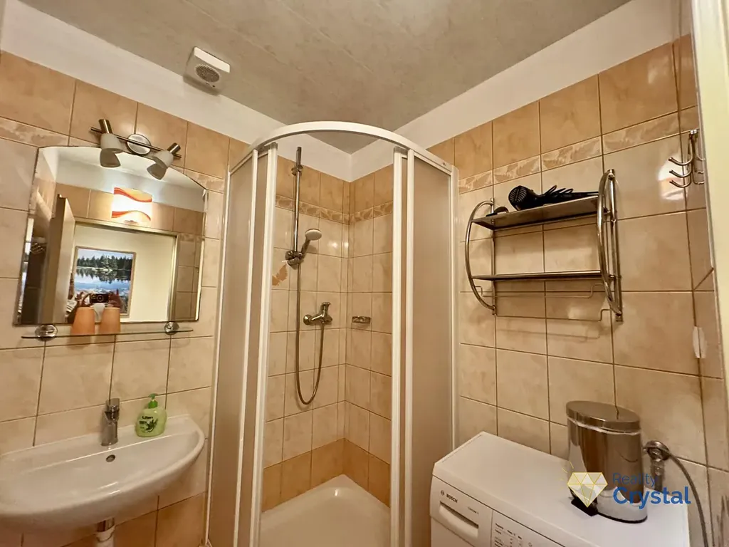 Jednotka je po generální a velmi zdařilé rekonstrukci, je plně vybavena a skládá se z předsíně, obývacího pokoje s kuchyní a jídelnou , ložnice a samostatné WC a koupelny.