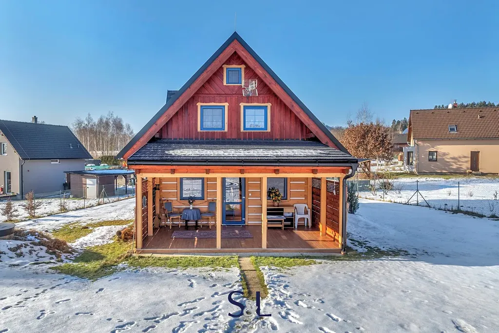 Nabízíme k prodeji novostavbu rodinného domu z masivních trámů (roubenku) o dispozici 4+kk, zkolaudovanou v roce 2022, nacházející se v klidné části obce Pihel u Nového Boru.