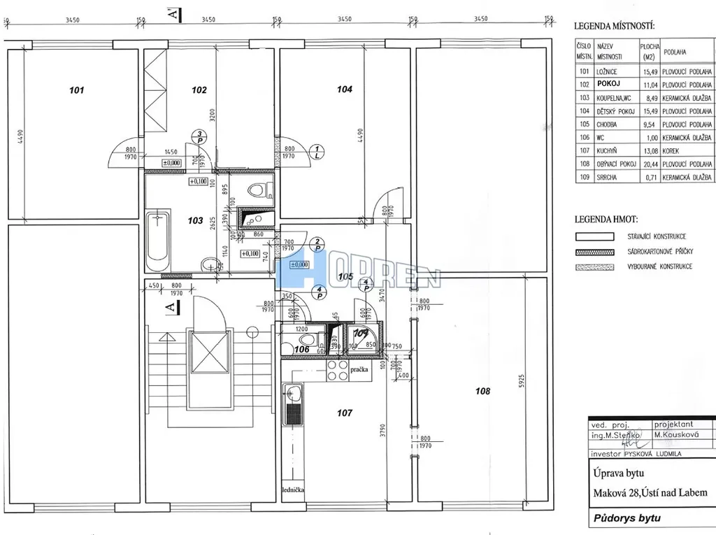 Nabízíme k prodeji velký družstevní byt 95 m2 (sloučení 2 bytů) umístěného v 6. patře panelového domu v ulici Maková, v lokalitě Severní Terasa. Byt je možné převést do OV. Jednotka je orientována na obě strany bytového domu tj. Z-V, s výhledem do okolní krajiny a do vzrostlé zeleně mezi bytovými domy. Prostorná kuchyň, s linkou a vestavěnými spotřebiči, umožňuje i umístění jídelního stolu. Ve středu bytu je situována velká koupelna se závěsným WC, rohovou vanou a sprchovým koutem, dále zde vyniká koupelnová galerie a skříňka s dvojumyvadlem. V bytě je také ještě samostatná toaleta. V bytové jednotce jsou také instalovány vestavěné skříně. Podlahy pokrývá dlažba a plovoucí lamino. K užívání bytu náleží i lodžie umístěná na mezipatře a sklep. Velká Terasa je oblíbené místo k bydlení v Ústí nad Labem. Nedaleko se nachází centrální park Severní Terasa s velkým množstvím venkovních prvků pro pasivní i aktivní odpočinek. Okolní příroda je téměř na dosah ruky, např. Erbenova vyhlídka umožňuje výhledy do širokého okolí. Veškerá občanská vybavenost je v blízkosti domu. Prohlídky po domluvě.