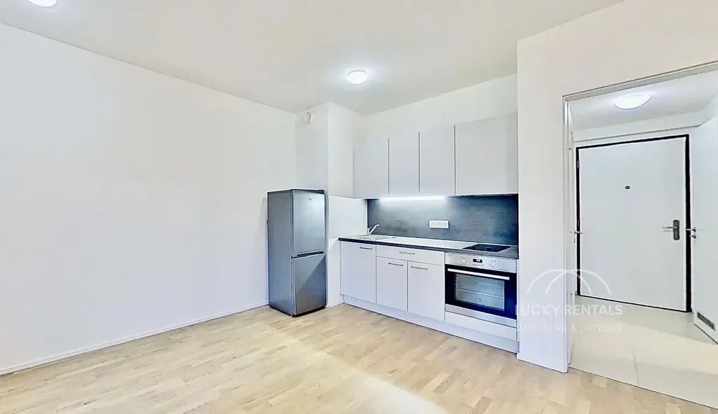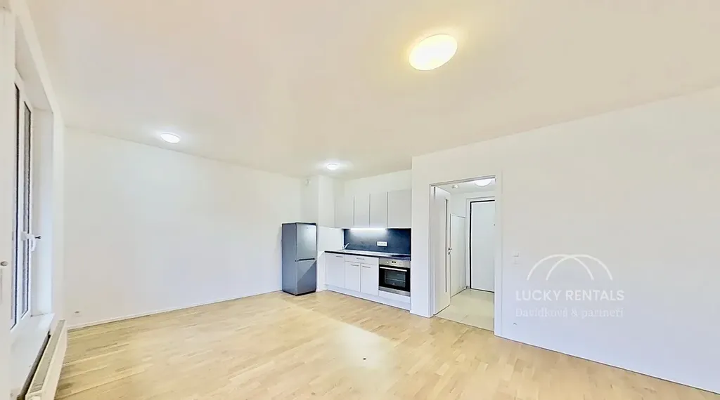 Byt je částečně zařízený a připravený k okamžitému nastěhování. Disponuje prostorným obývacím pokojem s kuchyňským koutem (24,2 m²) vybaveným troubou, sklokeramickou varnou deskou, digestoří a volně stojící lednicí s mrazákem. V chodbě (4,7 m²) se nachází šatní skříň, která poskytuje praktický úložný prostor. Z chodby je také přístup do koupelny (3,4 m²) se sprchovým koutem, která je řešena prakticky a funkčně. K bytu náleží sklepní kóje (2 m²) ve stejném podlaží.