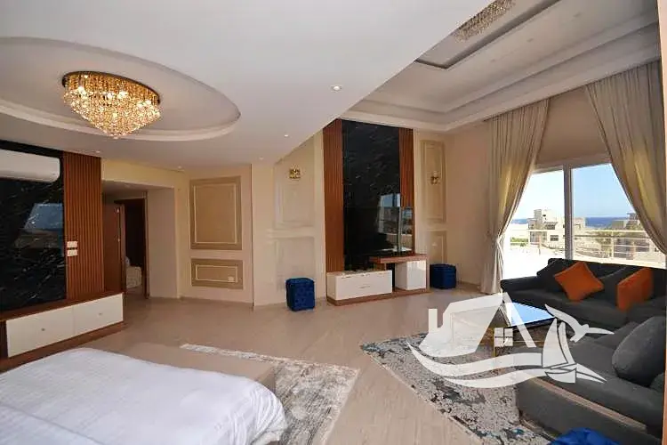 Tato super luxusní třípatrová vila se nachází v Jamaran Villas Sahl Hasheesh, velikost pozemku vily je 1100 m2 a zastavěná plocha je 600 m2.