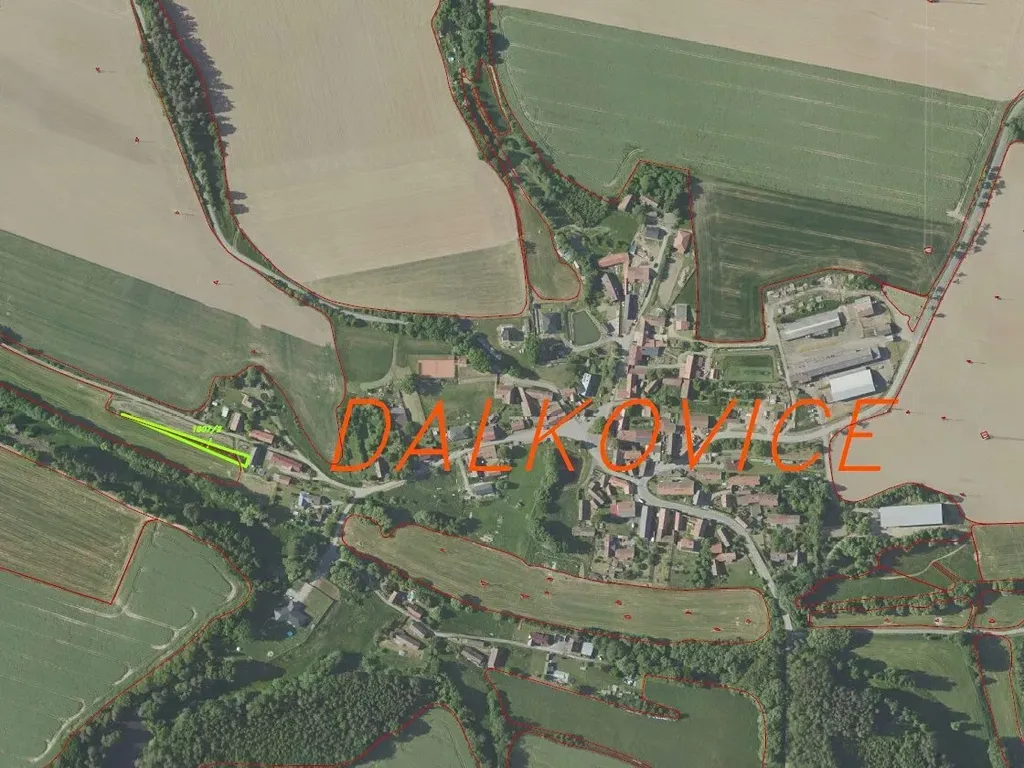 Předmětem dražby je pozemek o výměře 705 m2 v obci Dalkovice. Dle územního plánu se pozemek