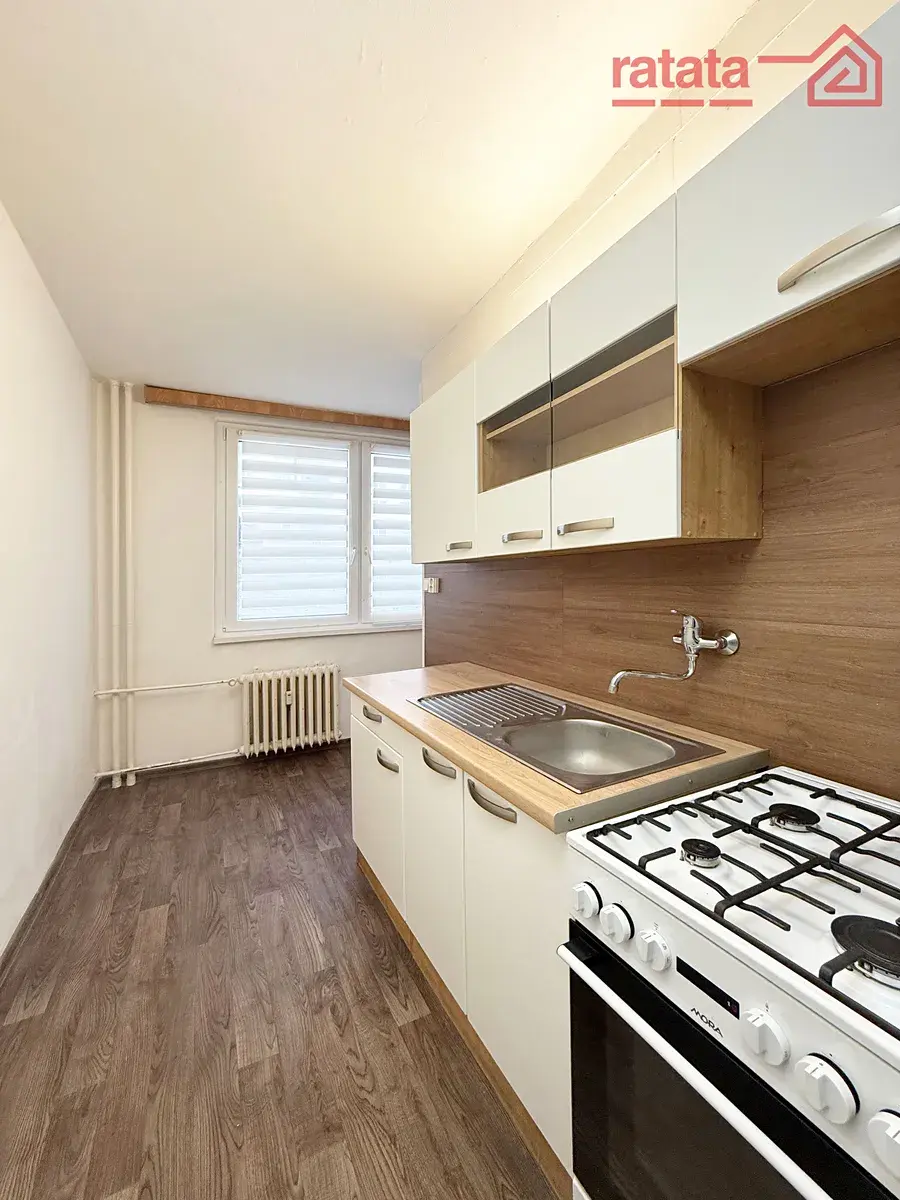 Je to čistý a slunný byt. Je zde kuchyňská linka, plynový sporák, vana, umyvadlo a WC. Na podlahách je položeno lino. Byt je volný k nastěhování IHNED.