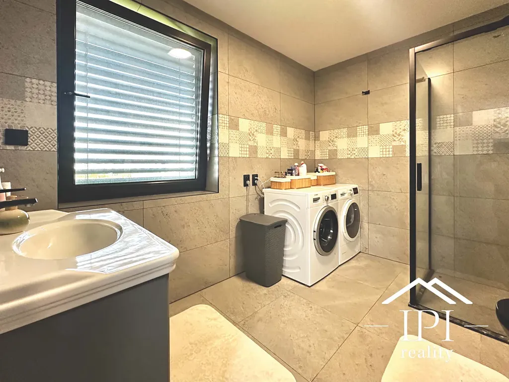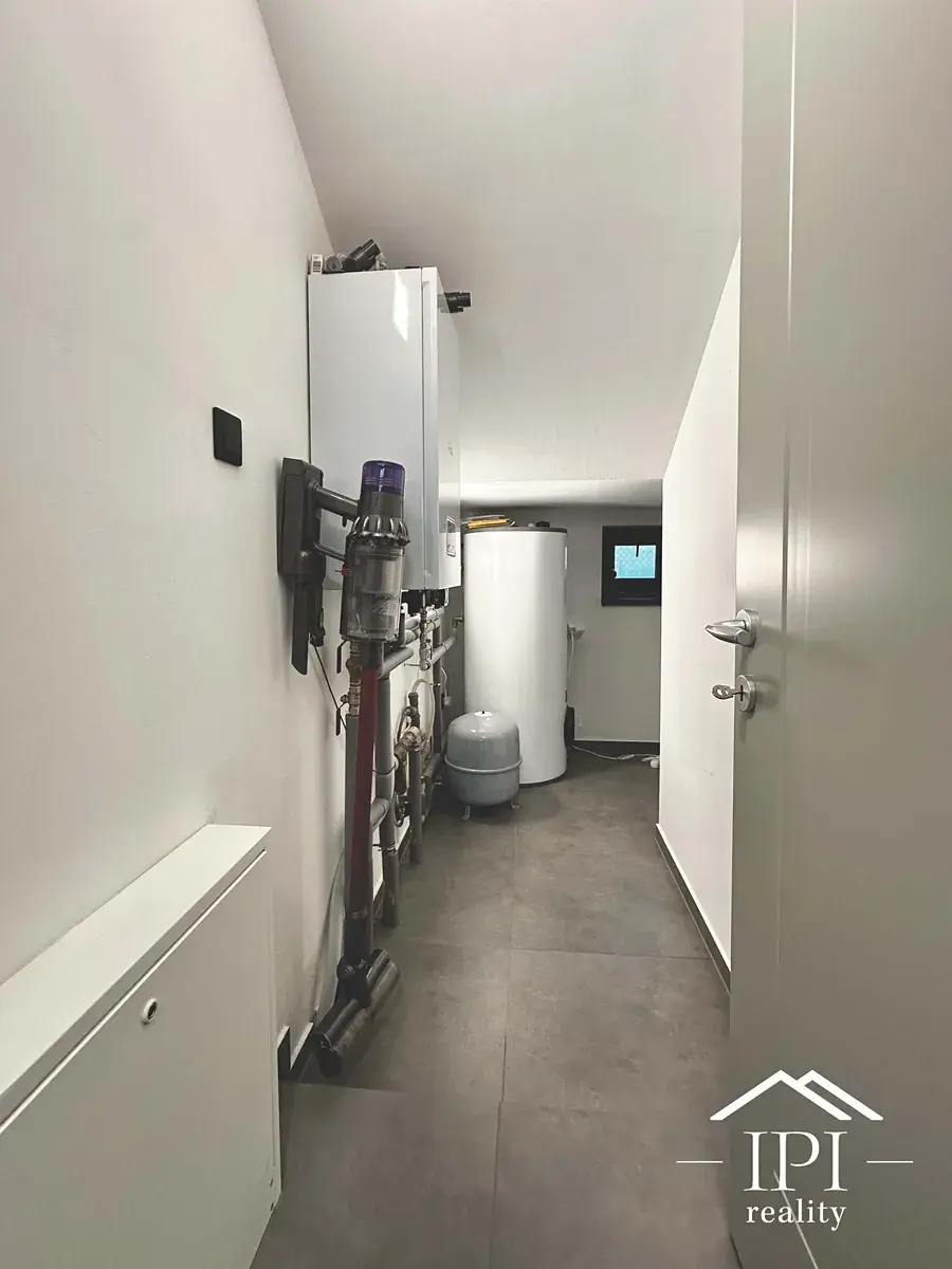 Dům se nachází v energetické třídě B, což zaručuje úsporný provoz, vyvážené náklady na energie a komfortní bydlení s ohledem na životní prostředí. Na střeše je již příprava pro instalaci solárních panelů, což umožňuje další snížení provozních nákladů v budoucnu. V celém domě je podlahové vytápění rozdělené do dvou samostatně řízených sekcí, vytápění zajišťuje elektrický kotel a ohřev vody elektrický bojler. V garáži je zavedeno 400V připojení – připravené pro nabíjení elektromobilů. Všechna okna jsou vybavena trojskly, která zajišťují skvělou tepelnou i zvukovou izolaci. Dům je rovněž vybaven moderním zabezpečovacím systémem s kamerovým dohledem, který zajišťuje maximální bezpečí a klid. Celkově jde o moderní, úsporný a technicky nadstandardně vybavený dům, který nabízí komfortní a ekologicky šetrné bydlení s důrazem na kvalitu a dlouhodobou úsporu provozních nákladů.