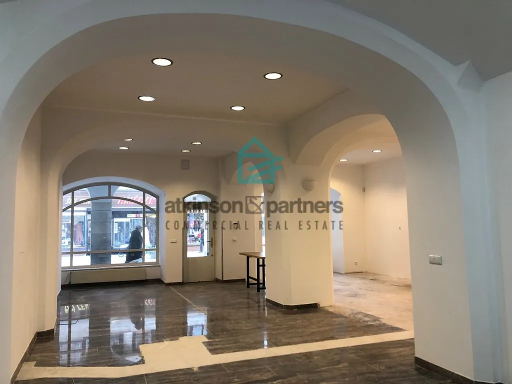 Nabízíme k pronájmu obchodní prostor v přízemí historického domu v centru Českých Budějovic v Krajinské ulici o celkové výměře cca 100 m². Do lukrativního prostoru se vchází z podloubí z Krajinské ulice, do které jsou rovněž orientovány velké výkladce. V zadní části se nachází technická místnost s odvětrávacím oknem do vnitrobloku, kterou lze využít např. jako šatnu pro zaměstnance, zázemí či sklad. K dispozici je samostatná toaleta s výlevkou. Prostor je ideálním řešením např. pro prodej značkového zboží, který vyžaduje polohu v centru města s výlohami, či např. pobočku banky, pojišťovny, prodejní kanceláře. Nájemní smlouva se uzavírá na dobu určitou 5 let se složením jistoty ve výši 3 měsíčních nájmů. Do prodejního prostoru je rovněž vyvedena voda. Prostor je k dispozici ihned, podlahová krytina bude položena na základě dohody s budoucím nájemcem. Pronajímatel není k datu uveřejnění prezentace plátcem DPH.