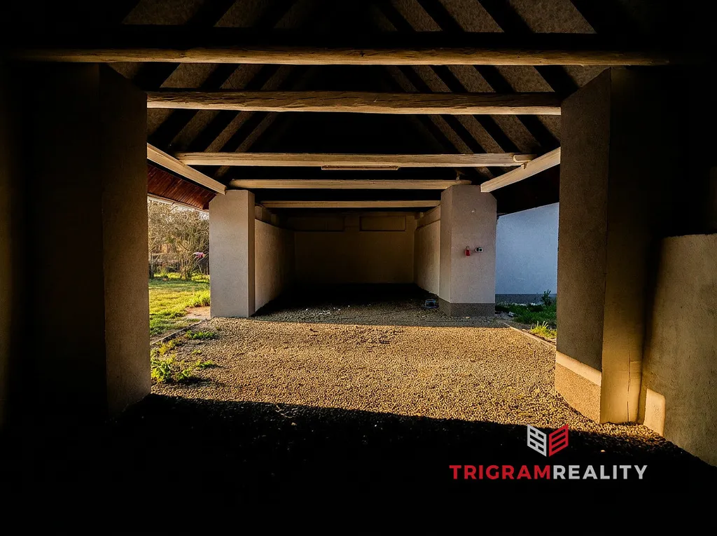 V přízemí najdete bytovou jednotku 3+kk, prostornou obývací místnost s kuchyňským koutem, dva samostatné pokoje a praktickou komoru - ideální jako zázemí pro nevěstu, vizážistku a rodinu. Dále je zde koupelna s vanou a umyvadlem a samostatné WC. Podkroví nabízí možnost rozšíření o další obytné pokoje. Součástí areálu jsou dvě prostorné stodoly a přístavba s místnostmi pro vaše využití, doplněná o menší hospodářské chlívky. Za stodolou navazuje udržovaná travnatá zahrada, přímo stvořená pro svatební obřad pod širým nebem. Přímo na hranici pozemku protéká Piletický potok a hned za ním se rozprostírá rybník vhodný pro svatební focení.