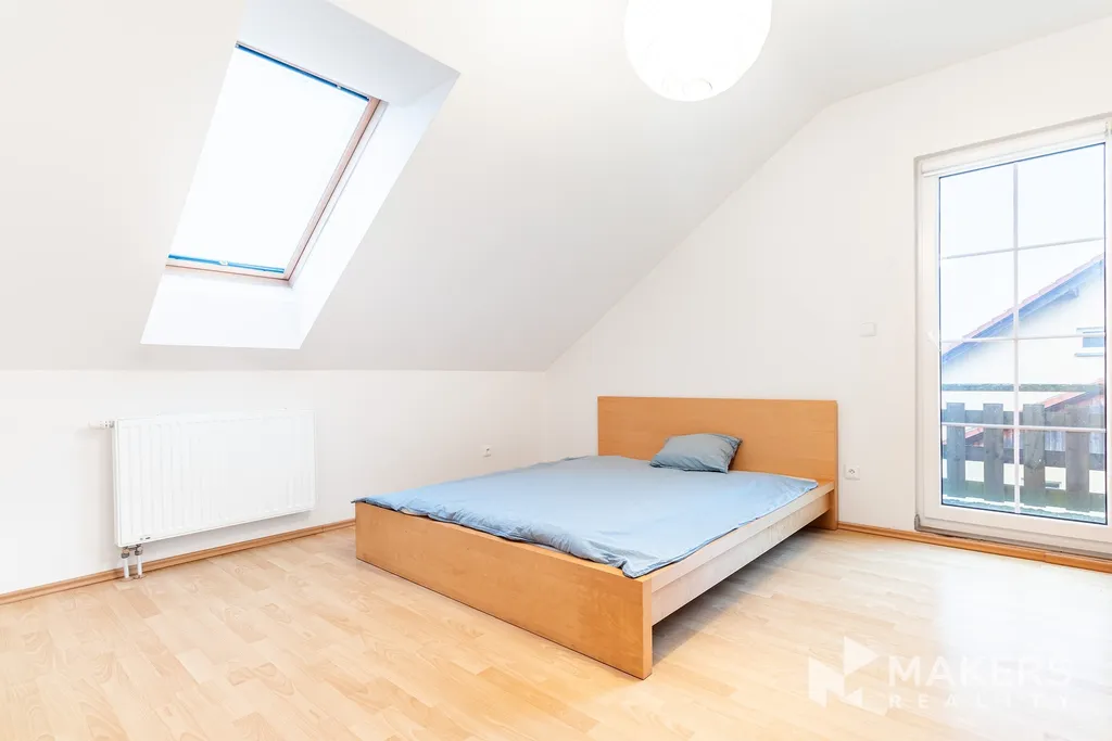 Z obývacího pokoje se dostanete do druhého patra, kde se nacházejí tři ložnice, přičemž dvě z nich mají přímý vstup na balkon s výhledem na okolí a zahradu. Dále je koupelna s vanou, sprchovým koutem, WC a technickou místnosti.