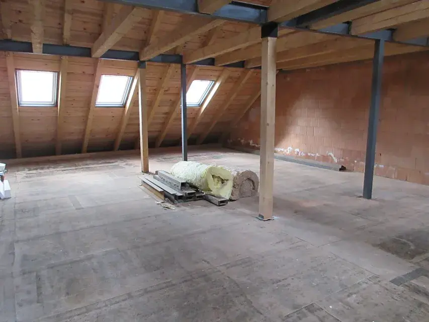 Podkroví – hrubá stavba vystavěna 2025 (140 m2) půdní prostor připravený pro výstavbu