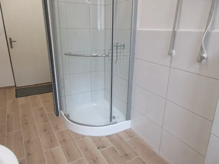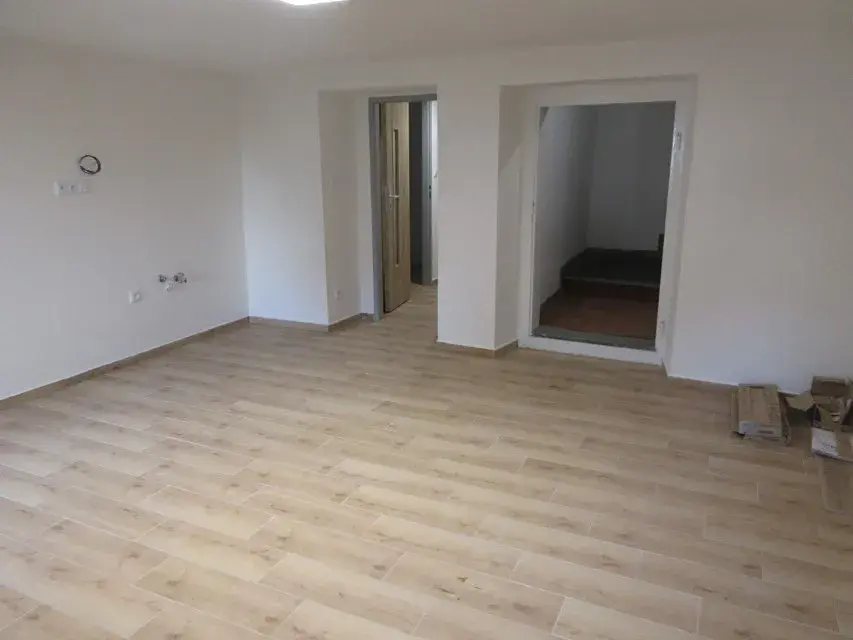 zázemí (12 m2), 1x místnost (20 m2) a koupelna (3 m2) se závěsným WC – vytápění