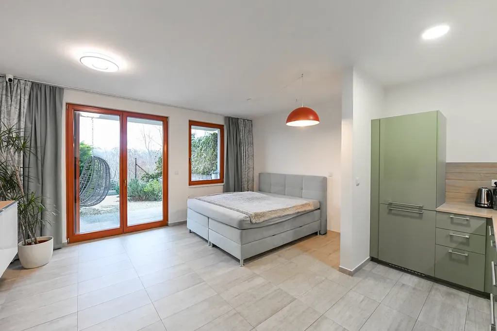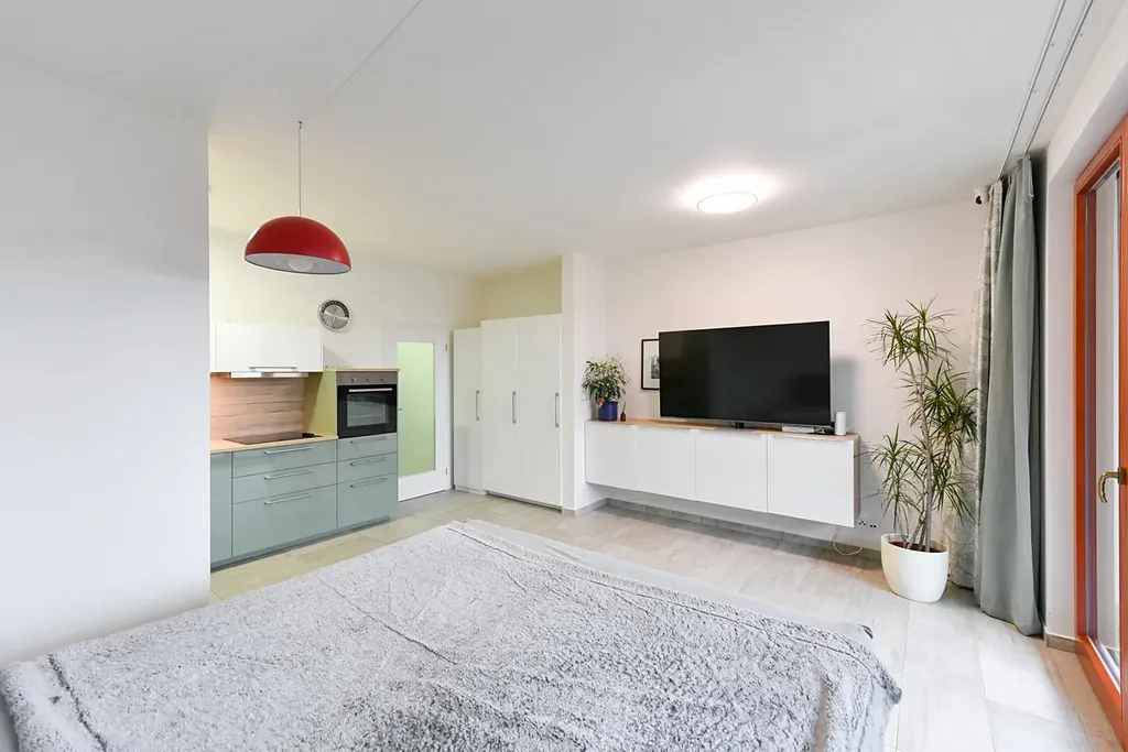 Nabízíme k pronájmu příjemný a prosvětlený byt 1+kk v klidné části Prahy 5 s terasou a předzahrádkou s výhledy do zeleně a okolí. Tento byt o podlahové ploše 42 m² se nachází v prvním patře smíšené stavby s bezbariérovým přístupem a výtahem. Byt je ve velmi dobrém stavu a jen částečně zařízen, což umožňuje dokonale přizpůsobit prostor svým potřebám.