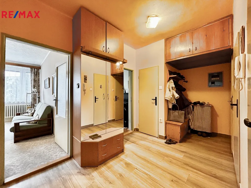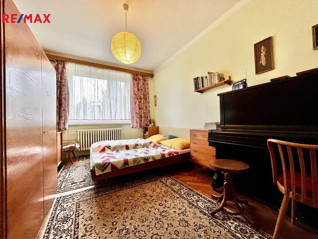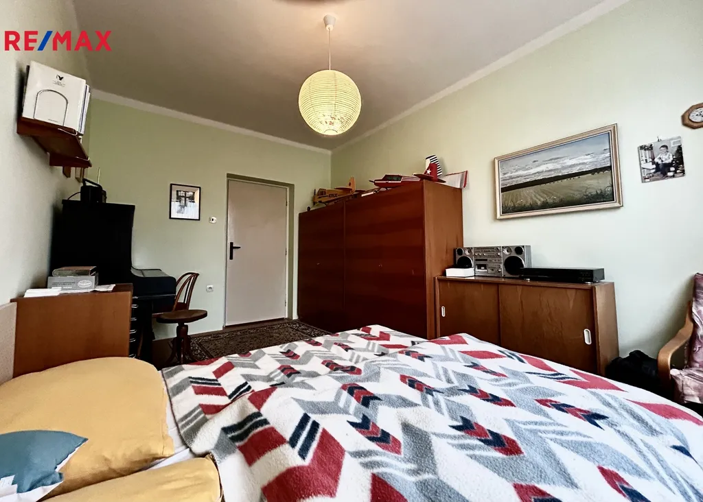 Celková plocha bytu činí 83 m². Kuchyň o velikosti 8.8 m2, obývací pokoj 22,15 m2, pokoj 14 m2, ložnice 10,5 m2, chodba 8,5 m2, koupelna 3,14 m2, WC 1,30 m2, komora 1,40 m2 a prostorný zasklený balkon 9 m2. V obývacím pokoji a v ložnici jsou dřevěné parkety v perfektním stavu, zbytek podlahové krytiny tvoří lino a dlažba. V obývacím pokoji je možnost instalace krbu. Příjemně vás překvapí prostor, který je k dispozici, a dostupnost dvou sklepních prostor o velikosti 6 m², ideální pro uložení potřebného vybavení nebo sezónních předmětů. Dále jsou k dispozici dvě kolárny, sušárna a prádelna.