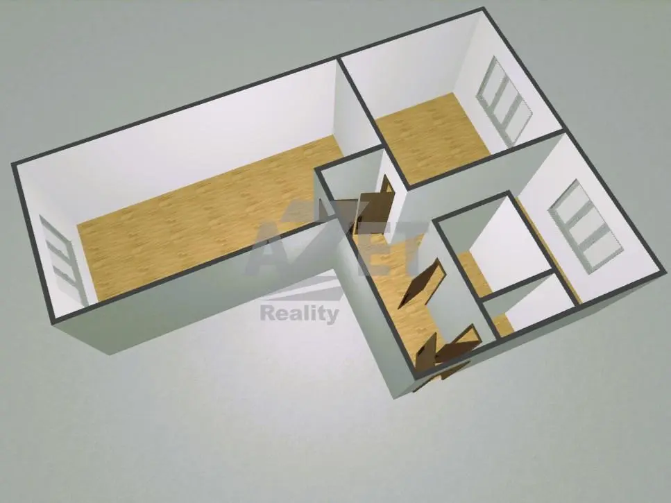 Byt nabízí zajímavý potenciál pro úpravu dispozice například vybudování šatny nebo pracovního koutku v obývacím pokoji.