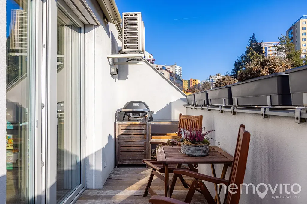 Špičkově provedený mezonetový byt z roku 2021, který je v nejvyšším podlaží domu o 6 bytech, který vyniká úsporným provozem. Tepelné čerpadlo s podlahovým topením, rekuperace, klimatizace, venkovní žaluzie. Dvoupodlažní jednotka byla proti původnímu návrhu kompletně přepracována a těšit se v ní můžete na dřevo, kov, beton a živý industriální vizuál. K bytu patří také bohaté příslušenství v podobě terasy, balkonu, sklepa a obrovské garáže.