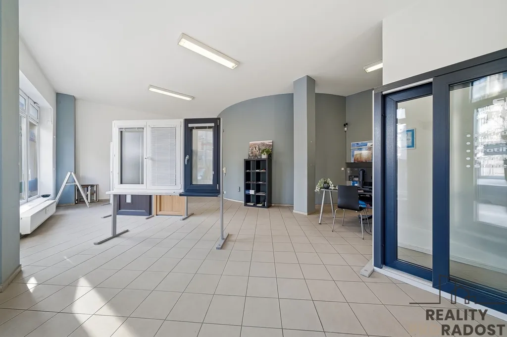 Dispozice zahrnuje hlavní obchodní či kancelářskou část a technickou místnost s umyvadlem a samostaným WC. Vytápění je řešeno dálkově, prostor je vybaven zabezpečovacím zařízením.