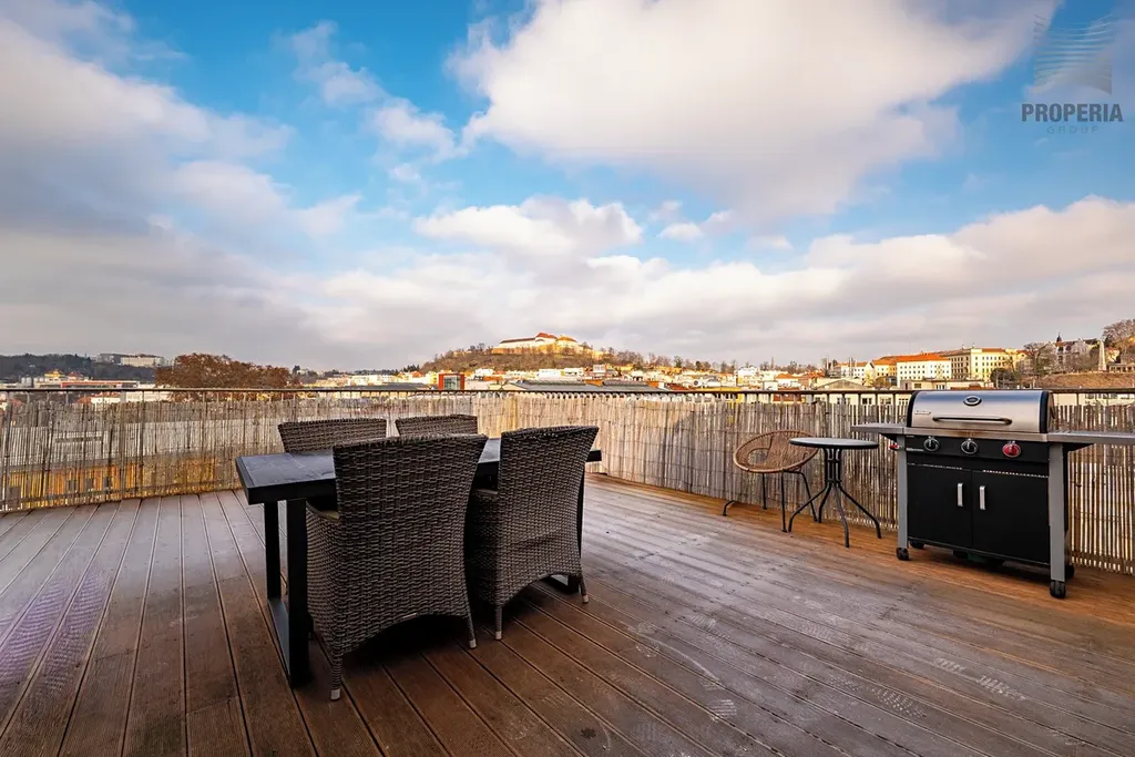 Jedním z hlavních lákadel jsou dvě terasy, ze kterých se otevírá jedinečný panoramatický výhled na hrad Špilberk, katedrálu Petrov i siluetu města Brna. Výhled, který se neokouká – ideální místo pro ranní kávu, večerní posezení s přáteli nebo klidný relax po náročném dni.