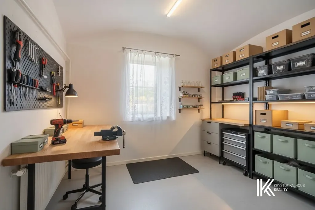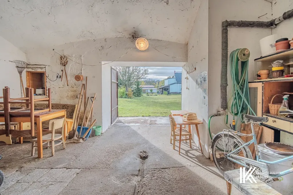Nemovitost tvoří jeden harmonický celek rozdělený do tří částí – obytnou část (cca 120 m2), prostornou garáž s dílnou (cca 33 m2) a hospodářské zázemí (cca 65 m2), které kdysi sloužilo k chovu zvířat. Každá z těchto částí má samostatný vstup, což otevírá široké možnosti budoucího využití – od rodinného sídla po ubytování či ateliérový prostor.