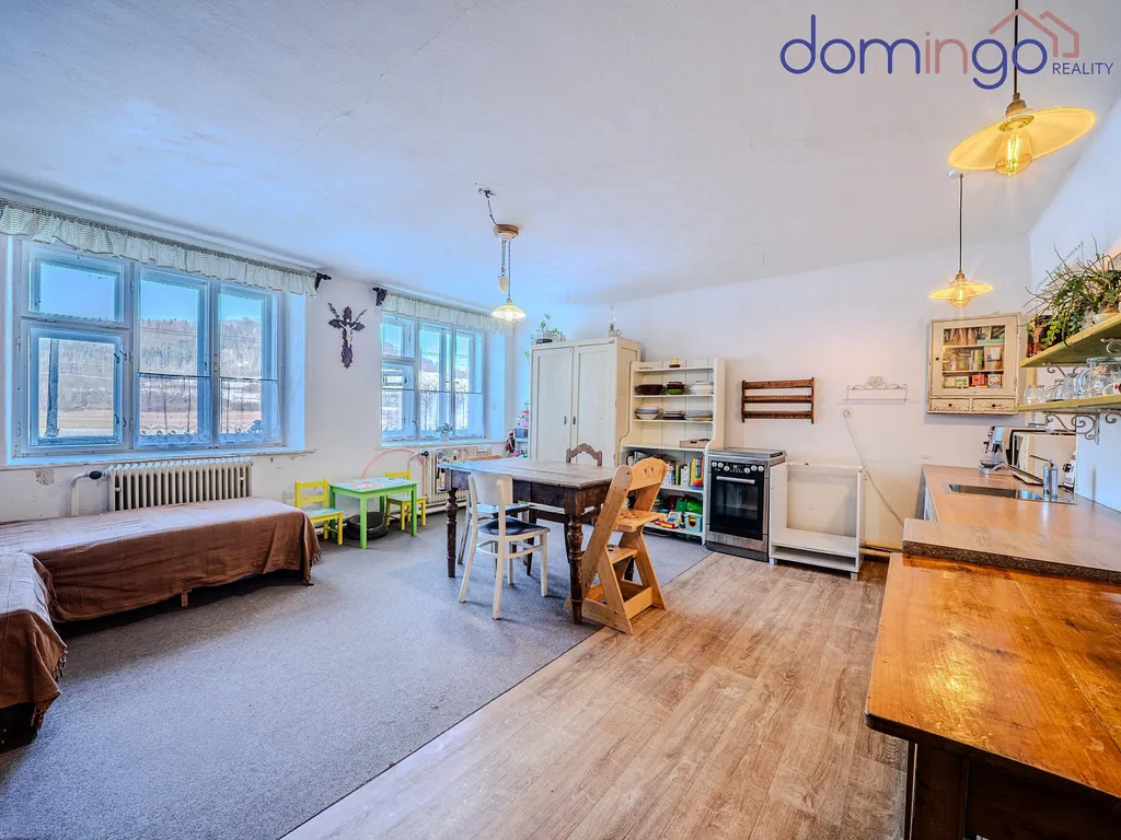 Obytnou část hlavní budovy tvoří byt o dispozici 3+1. Součástí domu je také bývalý výminek, odkrytý uvnitř na cihlu a kámen, který nabízí silný základ pro ateliér, pracovnu, dílnu, stylové bydlení nebo společenský prostor. V hlavní budově se dále nachází prostory využitelné jako sklady či kryté parkování.