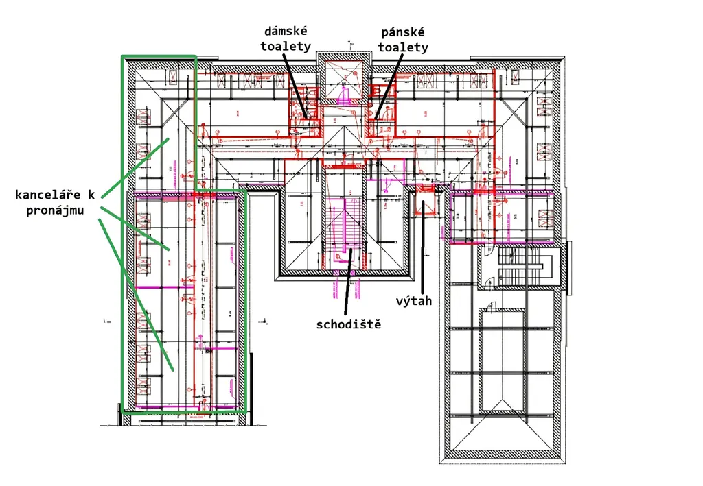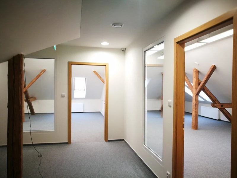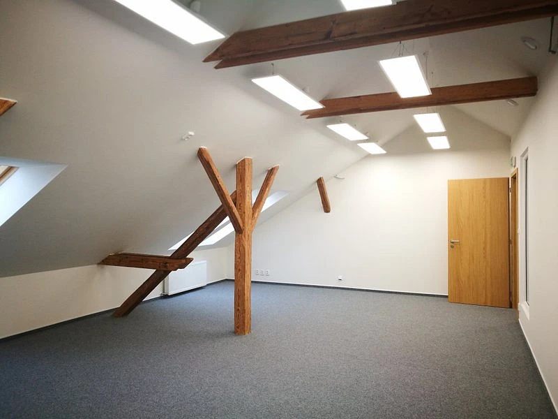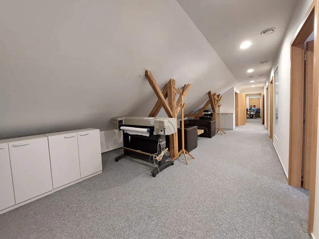 Nabízíme Vám k pronájmu zrekonstruovanné podkrovní kanceláře naproti Ostravar arény. Tyto klimatizované kanceláře se nachází ve 3. NP a jsou dostupné jak po schodišti, tak za pomoci výtahu. Nájemci jsou k dispozici pánské a dámské toalety na patře, vlastní kuchyňka a místnost pro IT technologie/servery. Pro potřeby současného nájemce byly upraveny dispozice kanceláří a v případě zájmu lze obnovit původní rozložení.