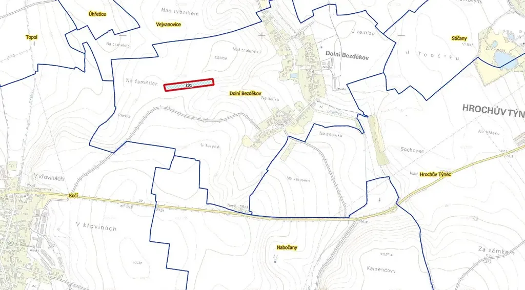 Nabízíme k prodeji atraktivní pozemek p.č. 231 o výměře 7 705 m2 v katastrálním území Dolní Bezděkov. Pozemek je spoluvlastněný ideální polovinou. Nachází se v klidné části katastru a je v současnosti řádně obhospodařován místním zemědělcem. Přístup zajištěn přes obecní pozemky. Nepropásněte příležitost ke koupi pozemku v tomto katastru.