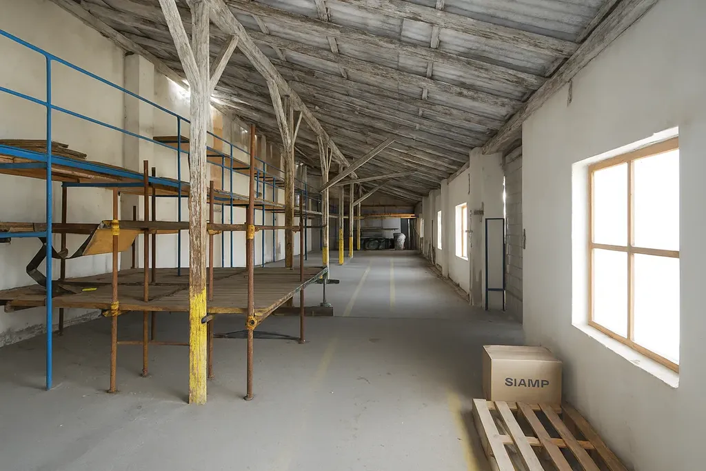 Hlavní budova č. p. 128 sloužila jako administrativní a provozní část, doplněná o výrobní haly a sklady s betonovými podlahami, ocelovými vraty a kompletní infrastrukturou. Součástí je také objekt č. p. 130, dříve využívaný pro občanskou vybavenost (obchod, kanceláře). Všechny stavby jsou napojeny na inženýrské sítě – elektřina, voda, kanalizace a plyn. Areál je přístupný pro nákladní dopravu, s možností parkování uvnitř areálu.