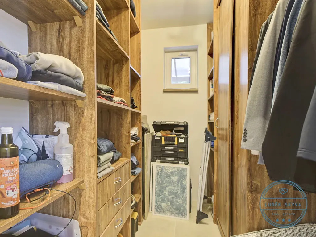 Interiér bytu je navržen velmi prakticky a dominantou tohoto prostoru je krásná, designová a vkusně řešená kuchyně, která přirozeně navazuje na obytný prostor s krbem, jenž umožňuje vytvořit naprosto ojedinělou atmosféru. Velkou přidanou hodnotou je šatna s dostatkem úložného prostoru, díky níž zůstává byt vzdušný a uklizený.