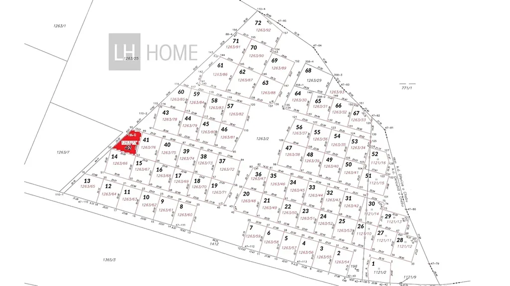 Pozemek č.67 na p.č. 1263/2 o celkové výměře 663 m2 je určený k rekreační zástavbě.
